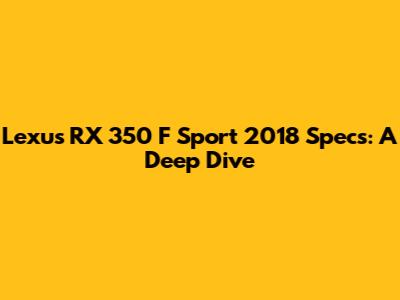 Hey guys! Let's dive into the specifics of the 2018 Lexus RX 350 F Sport. This car isn't just another luxury SUV; it's a statement. We're talking about a blend of style, performance, and comfort that makes it a popular choice for many. So, buckle up as we explore what makes this particular model year and trim so special. Understanding the Lexus RX 350 F Sport 2018 involves appreciating its powerful engine, sleek design, and advanced technology. It's not just about getting from point A to point B; it's about enjoying the journey with style and sophistication. The F Sport trim adds a sporty edge to the already luxurious RX 350, making it a standout in its class. From its distinctive exterior features to its performance-tuned suspension, the F Sport is designed to deliver a more engaging driving experience. This model year also benefits from Lexus's reputation for reliability and build quality, ensuring that owners can enjoy their SUV for years to come. The RX 350 F Sport 2018 is also packed with features that enhance comfort, convenience, and safety. With its spacious interior, advanced infotainment system, and comprehensive suite of driver-assistance technologies, this SUV offers a well-rounded package for discerning drivers. Whether you're navigating city streets or embarking on a long road trip, the RX 350 F Sport is designed to provide a comfortable and enjoyable ride. In this article, we'll cover everything from the engine and transmission to the interior dimensions and technology features. So, whether you're considering buying one or just curious about the specs, you're in the right place.