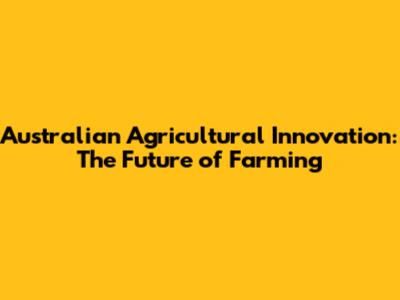 Australian Agricultural Innovation: The Future Of Farming