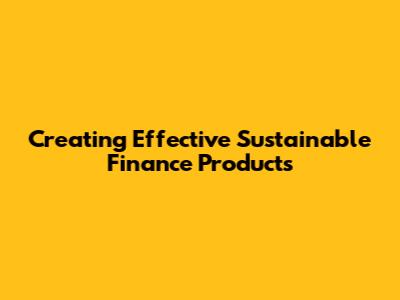 Creating Effective Sustainable Finance Products