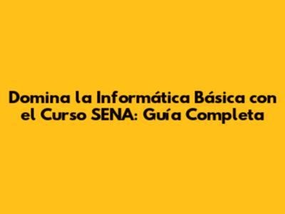 Domina La Informática Básica Con El Curso SENA: Guía Completa