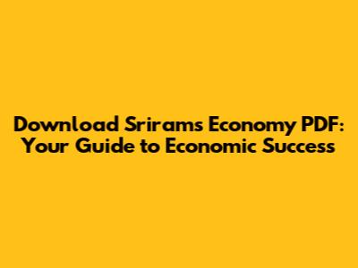 Download Sriram's Economy PDF: Your Guide To Economic Success
