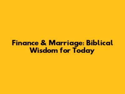 Finance & Marriage: Biblical Wisdom For Today