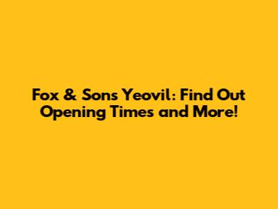 Fox & Sons Yeovil: Opening Times & More!