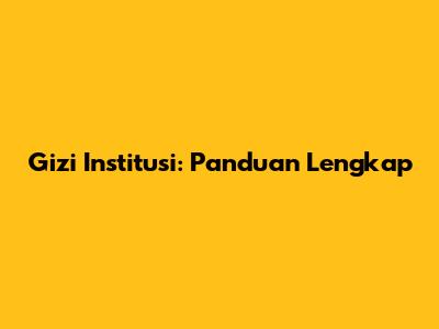 Gizi Institusi: Panduan Lengkap