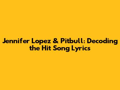 Jennifer Lopez & Pitbull: Decoding The Hit Song Lyrics