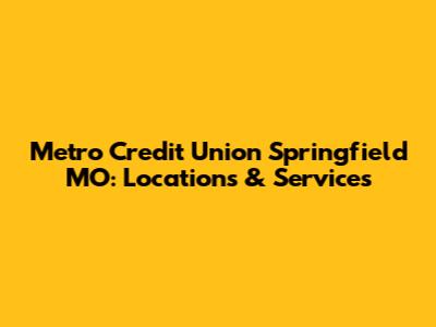 Hey guys! Are you looking for a reliable credit union in Springfield, Missouri? Look no further! Let's dive into everything you need to know about Metro Credit Union Springfield MO, including its locations, services, and why it might be the perfect fit for your financial needs.
