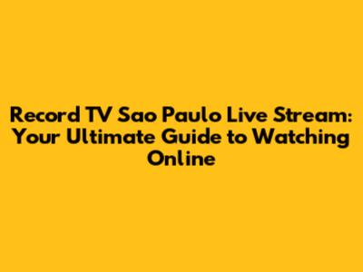 Record TV Sao Paulo Live Stream Guide
