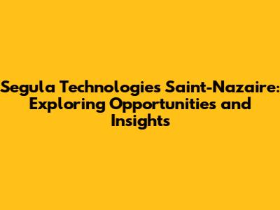 Segula Technologies In Saint-Nazaire: Opportunities & Insights