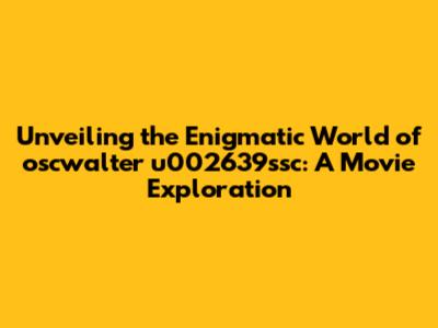 Unveiling The Enigmatic World Of Oscwalter U002639ssc: A Movie Exploration