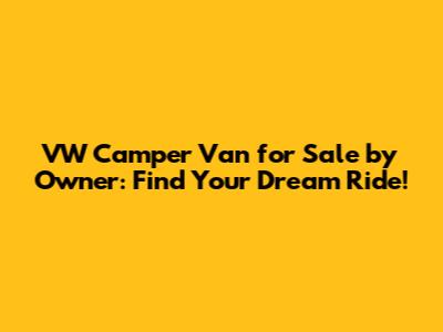 Finding a VW camper van for sale by owner can be an exciting and rewarding experience. By following these tips, you'll be well-equipped to find the van of your dreams and embark on unforgettable adventures. Happy travels!