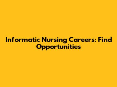 Informatic Nursing Careers: Find Opportunities